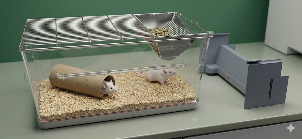 The Trackpaw system is inserted into the animal home cage environment and does not interfere with bedding, enrichment or feeding utilities in the cage. It can be retrofitted to existing racks and washed as a normal cage.